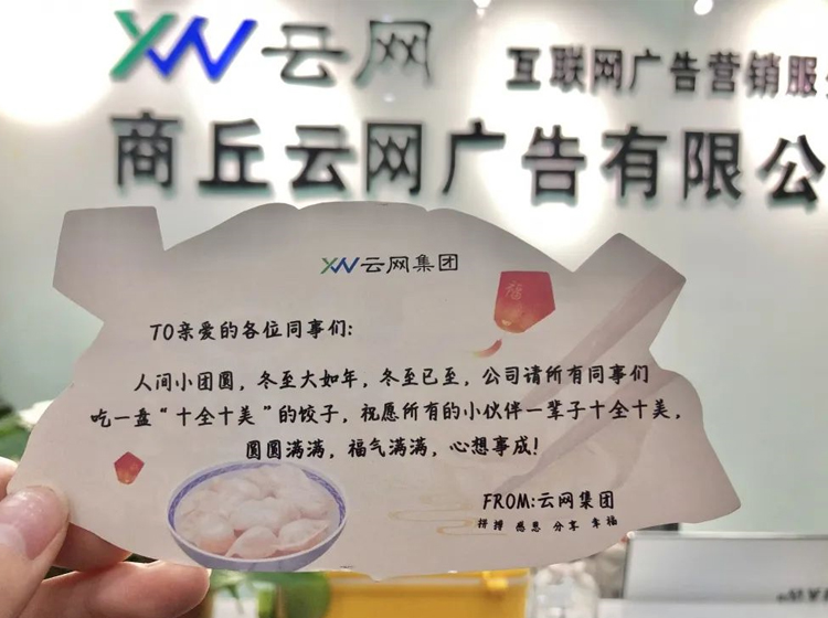 “冬至”之時(shí),云網(wǎng)集團(tuán)為小伙伴們準(zhǔn)備了,一份熱騰騰的餃子,